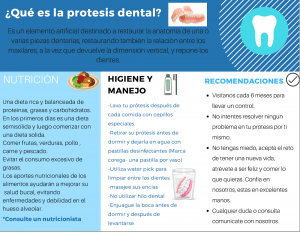 Estudiantes del curso de Microbiología Oral de la Facultad de Odontología de la Universidad Francisco Marroquín elaboraron una serie de trifoliares sobre el edentulismo, los documentos contemplan una serie de aspectos de higiene, nutrición y psicológicos que se deben manejar con dichos pacientes en esa forma seles orienta y se garantiza una segura recuperación.
