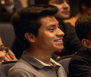 Nixon Sucuc sonríe durante una de las sesiones en el Auditorio EN-601.