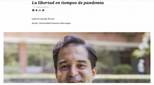 En una artículo titulado La libertad en tiempos de pandemia, el rector Calzada explicó que la crisis del coronavirus ha puesto a prueba nuestra inventiva, nuestra resiliencia, nuestra coherencia y, sobre todo, nuestros valores. Las lecciones de esta experiencia disruptiva son múltiples y profundas, y cada una de las lecciones individuales aprendidas marcará indirectamente el rumbo de nuestra sociedad en las próximas décadas. Este tiempo pasará a la historia como la época de la prevención distanciadora, de contactos sociales virtualizados, de crisis económica y de incertidumbre extrema. Para muchas familias el impacto habrá sido profundo e irreparable. Todos, sin excepción, hemos tenido que improvisar nuevas formas de hacer las cosas, desde la conducción de las relaciones sociales hasta la forma de continuar aprendiendo y educando.