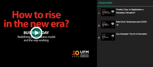 Los expertos compartieron sobre tendencias en los negocios, transformación digital, liderazgo, innovación, mercadeo y emprendimiento. Haz clic aquí para ver las conferencias: Is Digitalization a Necesary Disruption?, por Timothy Chow;  Tendencias pos covid-19, por René Scull; y  y The Art of Innovation, por Guy Kawasaki.