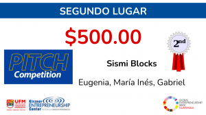 Segundo lugar: Eugenia De León, María Inés Mejía y Gabriel Garavito, de la Facultad de Arquitectura, con su proyecto Sismi Block.