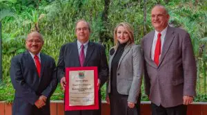 Viteri Arriola leyó el siguiente mensaje de su padre: «Recibo con enorme agradecimiento y sincera humildad el reconocimiento que esta respetada casa de estudios me hace, por mi contribución académica al derecho civil guatemalteco».