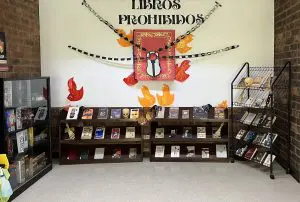 Lee libros prohibidos, exhibición en la biblioteca Ludwig von Mises. Foto por Luis Figueroa.