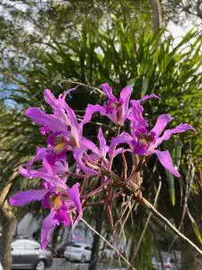 Un hermoso ejemplar de Laelia superbiens florece en el estacionamiento administrativo de la Universidad Francisco Marroquín.