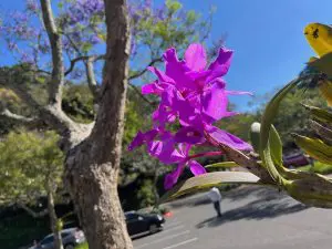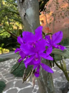 Las Guarianthe skinneri son las flores moradas que ves en algunos árboles del campus. La G. skinneri puede llegar a medir hasta 50 cm de alto. Normalmente crecen en grupos y su inflorescencia es un racimo que tiene entre 4-12 flores de color rosado intenso a morado.