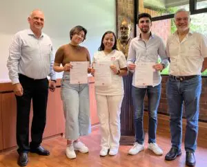 Ricardo Castillo A., rector, Brisa Morales; Emily Rivas, Saif Mubarak y Ramón Parellada. Foto por Luis Figueroa.