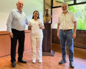 Ricardo Castillo A., rector; Emily Rivas Arriaga, ganadora del primer lugar y Ramón Parellada, secretario general de la UFM y presidente del CEES. Foto por Luis Figueroa.