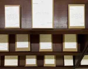 Exhibición en el vestíbulo de la Biblioteca von Mises en la UFM. Foto por Luis Figueroa.