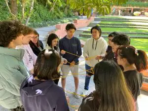 Estudiantes de las facultades de Odontología y de Arquitectura luego de una actividad de cuerdas. Foto por María José Ajcú.
