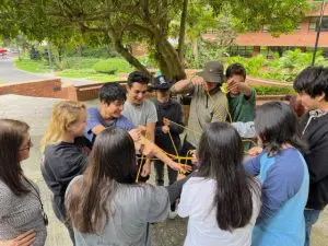 «Durante la actividad de cuerdas, en el Jardín Manuel F. Ayau, se discuten los tipos de orden en la sociedad y la confusión del lenguaje en el pensamiento. Durante la misma, los estudiantes exploraron las diferencias entre órdenes espontáneos y órdenes creados; así como la relación de estos con las normas generales y abstractas y las normas específicas y concretas», explicó el profesor Luis Figueroa.