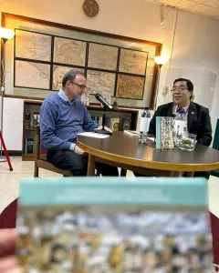 Luis Martínez y Johann Melchor comentaron Comprender la primera evangelización de América. Haz clic en la foto para ver el vídeo. Foto por Mayra Ramírez.