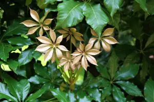Cuando están tiernas, sus hojas son doradas. Ya sean tiernas o maduras, sus hojas lustrosas pueden ser usadas como ornamento.