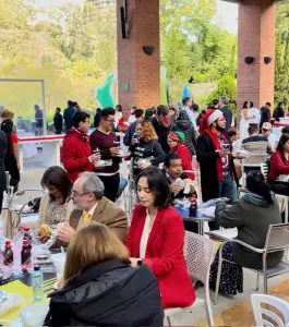 Colaboradores de los equipos de Mercadeo y de Recursos Humanos durante el desayuno en la Plaza de la Libertad. Foto por Luis Figueroa.