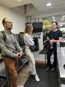 Sara Barrachina y Jaume Cot, de España, en compañía del chef guatemalteco Ronald García, conocieron la Universidad Francisco Marroquín como parte de una visita a Guatemala para entender el país desde distintas perspectivas: gastronomía, cultura, economía y educación. Sara Barrachina es gerente de mercadeo del grupo Vilbo, mientras que Jaume Cot es editor jefe en ese grupo editorial. Por otro lado, Ronald García es profesor de Gastronomía Especializada y de Pastelería y Chocolatería, en la carrera de Gastronomía Nutricional y Empresarialidad, en la Escuela de Nutrición, de la UFM.