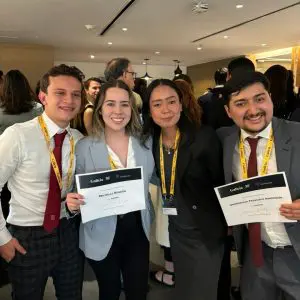 «Me gustaría invitar a los futuros estudiantes y los actuales estudiantes de Derecho a que participen en los Moots. Al participar, mi recomendación es que desde el momento que bajen del avión tomen cualquier oportunidad, para hacer conexiones, conocer nuevos colegas, que tomen cada Feedback de los árbitros, mantengan siempre la ética profesional cuando estén compitiendo, y por último que aprovechen la experiencia. Más allá de ganar, es una oportunidad para aprender, crecer, y sobretodo dase cuenta del crecimiento personal y profesional que han adquirido. La actitud, confianza en sí mismos y el saber hacen que tengan, en sus manos, las herramientas suficientes para sobresalir en la competencia», agregó Cuevas.
