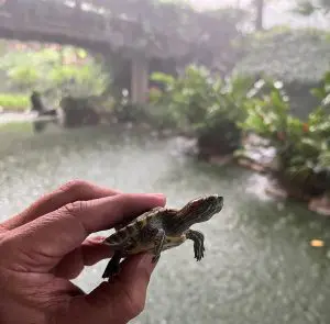 «Queremos que vivan en una casa grande y bonita como esta laguna», dijo Alessa Forno —de seis años de edad— cuando ella y su hermana Nícola —de cuatro años— trajeron a sus tortuguitas a la fuente de la Biblioteca Ludwig von Mises. Ellas trajeron dos tortugas de orejas rojas, que son buenas nadadoras y disfrutan del calor que proveen las horas de sol.