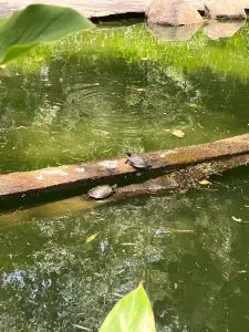 En la fuente de la Biblioteca Ludwig von Mises habitan varias tortugas que, en esta temporada pueden ser obervadas mientras toman el sol.