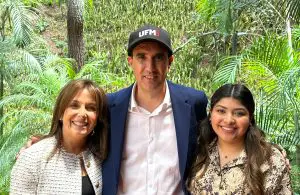 Ximena de Zibara, coordinadora de Gastronomía Nutricional y Empresarialidad, César Mariel y Ana Lucía Godinez en la UFM. Foto de Isabela Bolaños.