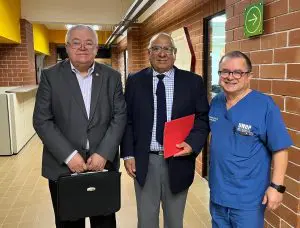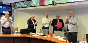 Federico Alfaro, decano de la Facultad de Medicina; Guido Andretta, Premo Nozick 2024; y Federico Antillón, futuro decano de Medicina. Foto por Luis Figueroa.