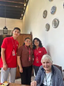 Marion Popenoe de Hatch acompañada por estudiantes anfitriones de la UFM. Foto por Mayra Ramírez.