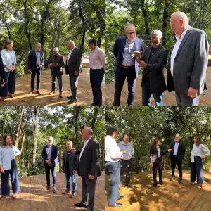 Kim Tan, en compañía de su equipo y de directivos de la UFM visitó el deck del Sexto piso del Edificio Académico entre el bosque. Fotos por Luis Figueroa.