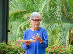 Estudiantes, profesores y amigos de la UFM participaron, con Robyn Metcalfe en una conversación enriquecedora en la Terraza Rose Friedman. Fotos por Isabela Bolaños.