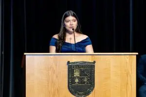 Kimberly Denisse Santizo B. ofreció unas palabras desde el podio. Foto por Roberto Sacasa.