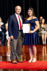 El fiduciario Manuel Ayau G. le entregó el reconocimeinto a Kimberly Denisse Santizo B. Foto por Roberto Sacasa.