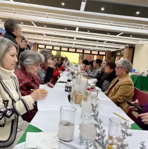 Rossanna Valls, de pie, condujo los concursos en la mesa antes del almuerzo. Foto por Luis Figueroa.