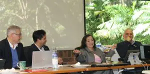 Ramón Parellada, Gabriel Calzada A., Lucy Martínez-Mont y Ricardo Castillo A. durante la entrega del reconocimiento Llamas de la Libertad. Foto por María José Ajcú.