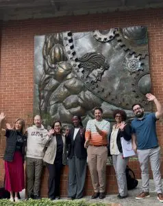Conferencistas y miembros del equipo del College Freedom Forum y de la UFM frente a Atlas Liberas. Foto por Luis Figueroa.