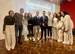 Adrián Ravier (sexto de izquierda a derecha) con estudiantes de Derecho y Odontología. Foto por Luis Figueroa.