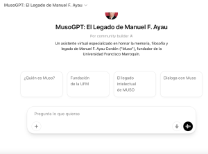 «Los invito a explorar el GPT Store y conversar con el legado de Muso en muso.ufm.edu. ¡Descubran su legado y mantengan vivas las ideas que difundió con tanto entusiasmo!», agregó el rector.