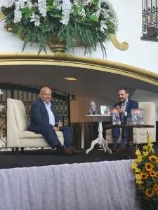 Milton Estuardo Argueta y Luis Pedro del Valle conversaron sobre «De cara al Sol» en el Club Guatemala. Foto por Luis Andrés Schwartz.