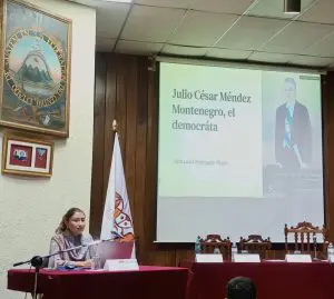 «Para mí, haber profundizado en la figura de Julio César Méndez Montenegro significa devolver al debate público una figura a veces incomprendida, incluso olvidada, en la historiografía política guatemalteca. El libro reconstruye hechos de su vida, de su presidencia y de su contexto histórico, e invita a reflexionar sobre conceptos como la democracia, la institucionalidad y la polarización en un momento particularmente complejo para Guatemala. Méndez Montenegro fue presidente, un académico, un hombre de leyes y un protagonista del siglo XX», dijo Ana Lucía Rodríguez, autora de Julio César Méndez Montenegro: el demócrata. La historiadora y escritora Ana Lucía Rodríguez presentó el libro en la Academia de Geografía e Historia de Guatemala el 29 de octubre del 2025.