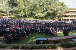 Acto de graduación en el Jardín Manuel F. Ayau, en la Universidad Francisco Marroquín. Foto por Roberto Sacasa.