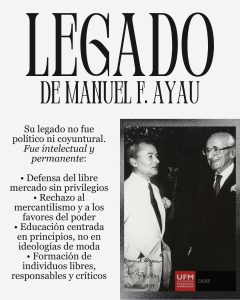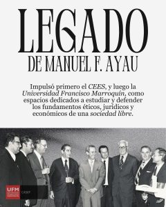 Manuel F. Ayau impulsó primero el Centro de Estudios Económico-Sociales y luego la Universidad Francisco Marroquín como espacios dedicados a estudiar y defender los principios éticos, jurídicos y económicos de una sociedad libre.