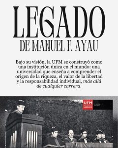 Desde su visión, la UFM se construyó como una organización única en el mundo: una universidad que enseña a comprender el origen de la riqueza, el valor de la libertad y la responsabilidad individual, más allá de cualquier carrera.
