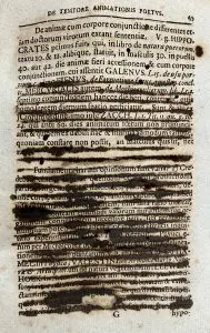 - Rechazo moral o teológico personal. Valle era un ilustrado moderado: promovía la razón y la ciencia, pero subordinadas a la fe. Temas como el momento exacto del ensoulment (animación) podían rozar debates sensibles sobre aborto, infanticidio o legitimidad en contextos legales; por ejemplo, si un feto no «animado» contaba como persona plena en casos criminales o sucesorios. Las tachaduras cubren referencias a autores protestantes o controvertidos (como Wittie, 1708) y discusiones hipotéticas que podrían interpretarse como permisivas.