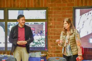 José Carlos Argueta y la decana, Mónica de Zelaya, durante una de las sesiones de ordoliberalismo en la FCE. Foto de la FCE.