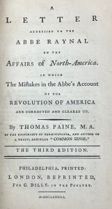 «En la UFM no hay un ejemplar original de Common Sense; pero en la sala de colecciones especiales José Cecilio del Valle se encuentra una tercera edición de A Letter Addressed to the Abbe Reynal on the Affairs of North America, de 1773, escrita por Paine. Esta es una obra clave del pensamiento revolucionario de Thomas Paine (aunque menos conocida que Common Sense), y en ella defiende la Revolución americana y reafirma sus ideas sobre la soberanía popular y la independencia. En la carta, Paine expuso su visión de la revolución como un evento de alcance universal, no solo como una disputa colonial, sino como el inicio de una era de libertad y derechos individuales», explicó Luis Figueroa.