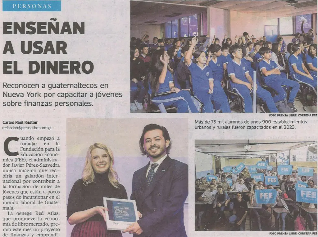 Pia Fleming, Daphne Posadas, Gabriela Rodríguez y Andrea Martínez, de la Universidad Francisco Marroquín, recibieron reconocimientos por parte de la Atlas Network, por proyecto con la FEE en Español.