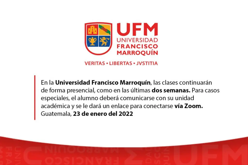 En la Universidad Francisco Marroquín, las clases continuarán de forma presencial como en las últimas dos semanas.