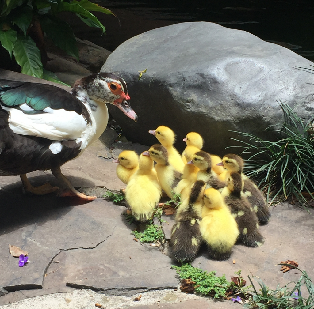 Doce patitos nacieron a inmediaciones de la fuente de la Biblioteca Ludwig von Mises, de la Universidad Francisco Marroquín.