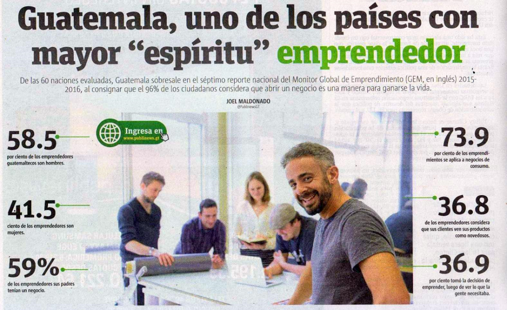 Guatemala es uno de los países con mayor espíritu emprendedor, en el mundo, reportó Joel Maldonado, de Publinews,