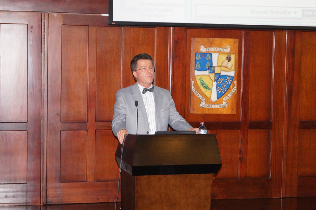 Los médicos Luis Ramírez y Vinicio Granados, especialistas en endocrinología, fueron los ponentes del Seminario Clínico Interactivo Actualizaciones en Diabetes que se celebró el 26 de mayo de 2016 en la Aula Magna Rodolfo Herrera Llerandi.