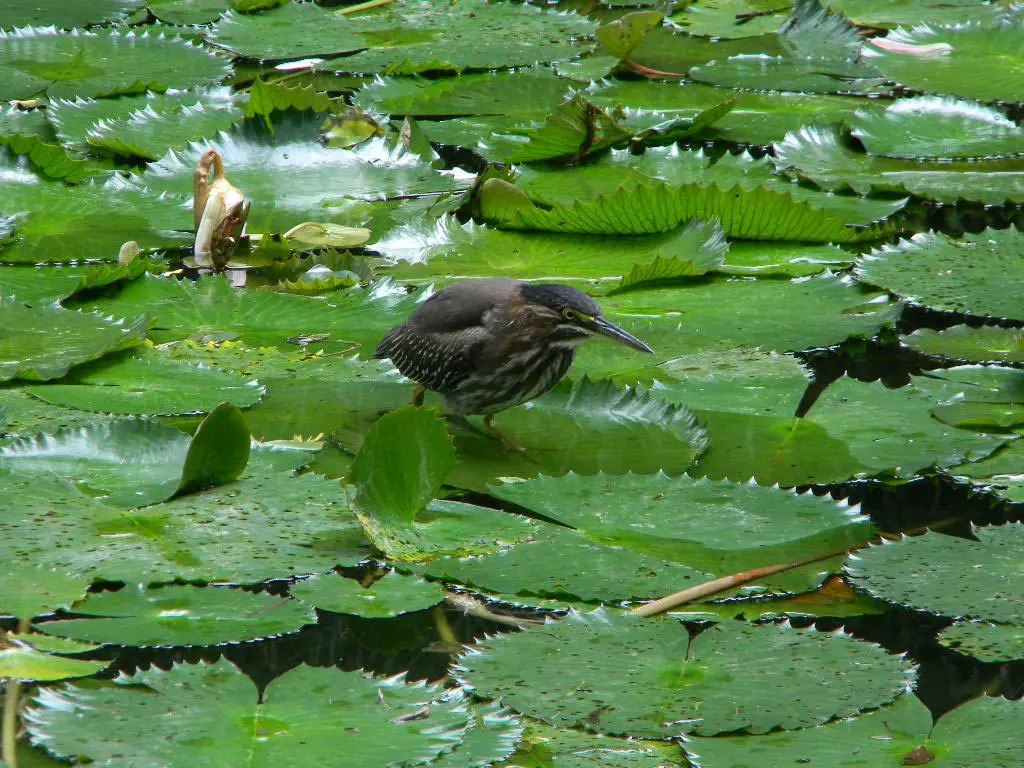 Tres garcitas verdes están de visita en la fuente de la Biblioteca Ludwig von Mises, en la Universidad Francisco Marroquín.