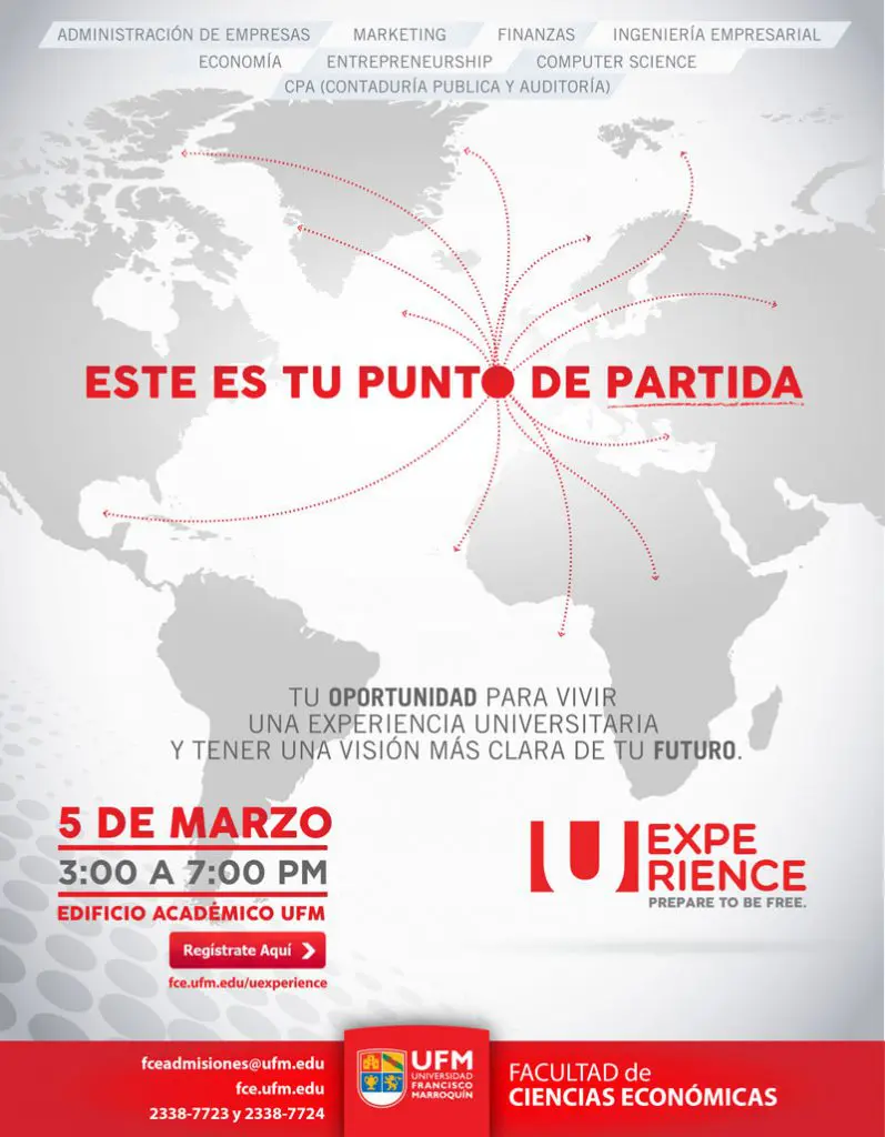 La Facultad de Ciencias Económicas te invita a que participes en el primer “Uexperiencie” de 2015, el cual se estará llevando a cabo el próximo 5 de marzo. Esta es una oportunidad para vivir una experiencia universitaria y tener una visión más clara del futuro.