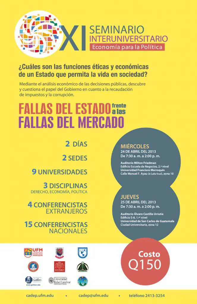 Con la concurrencia de más de 200 estudiantes representando a nueve universidades de Guatemala, incluidos amigos de Mazatenango, Quetzaltenango y San Marcos, se desarrollo el XI Seminario Interuniversitario, Economía para la Política.
