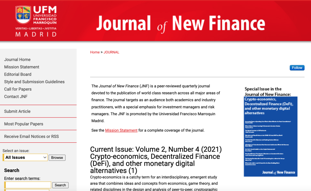 El tercer número del Journal of New Finance, que publica la Universidad Francisco Marroquín Madrid, ya está a tu…